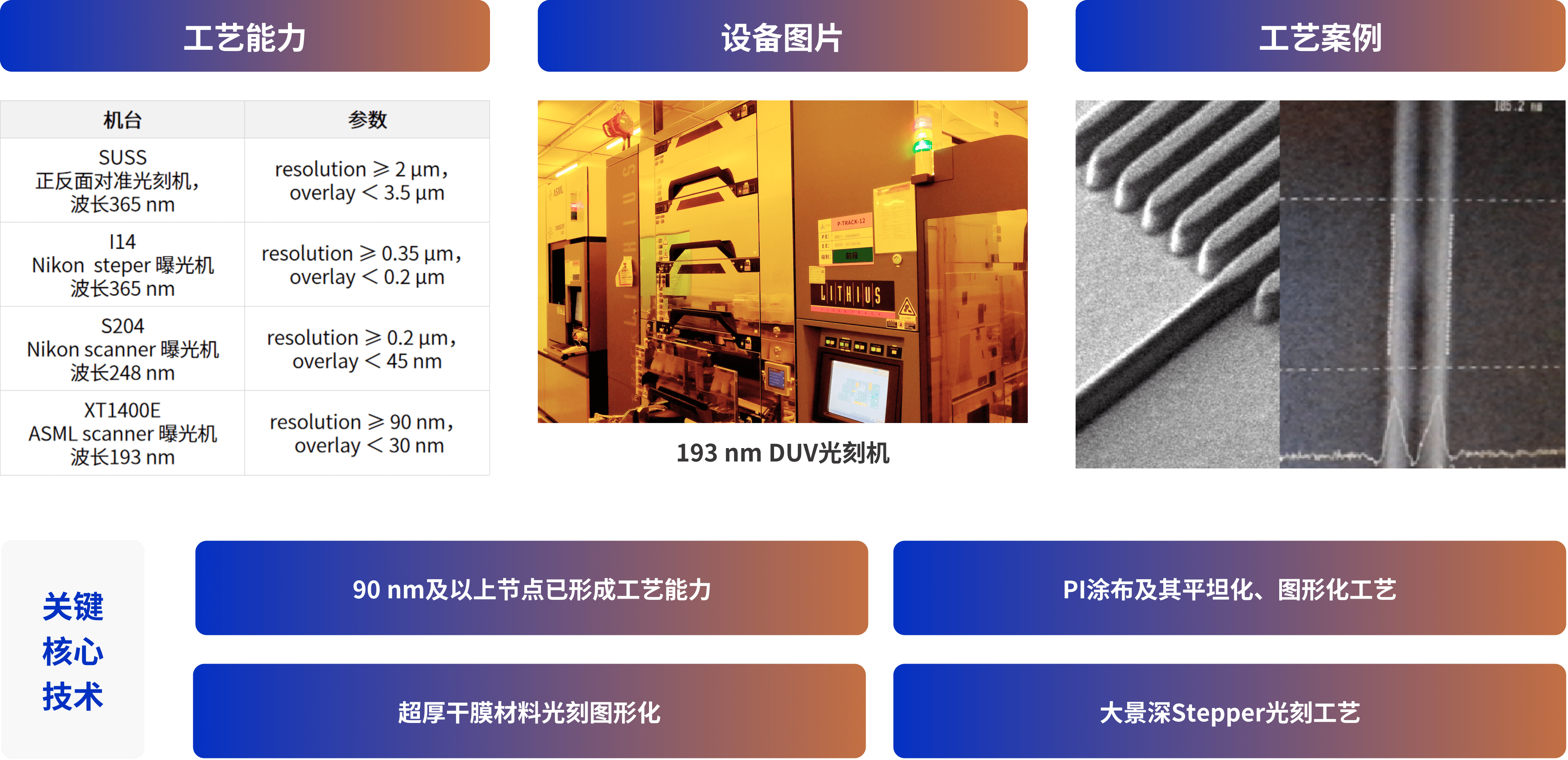全面的光刻能力,从DUV到Iline到Aligner均有覆盖