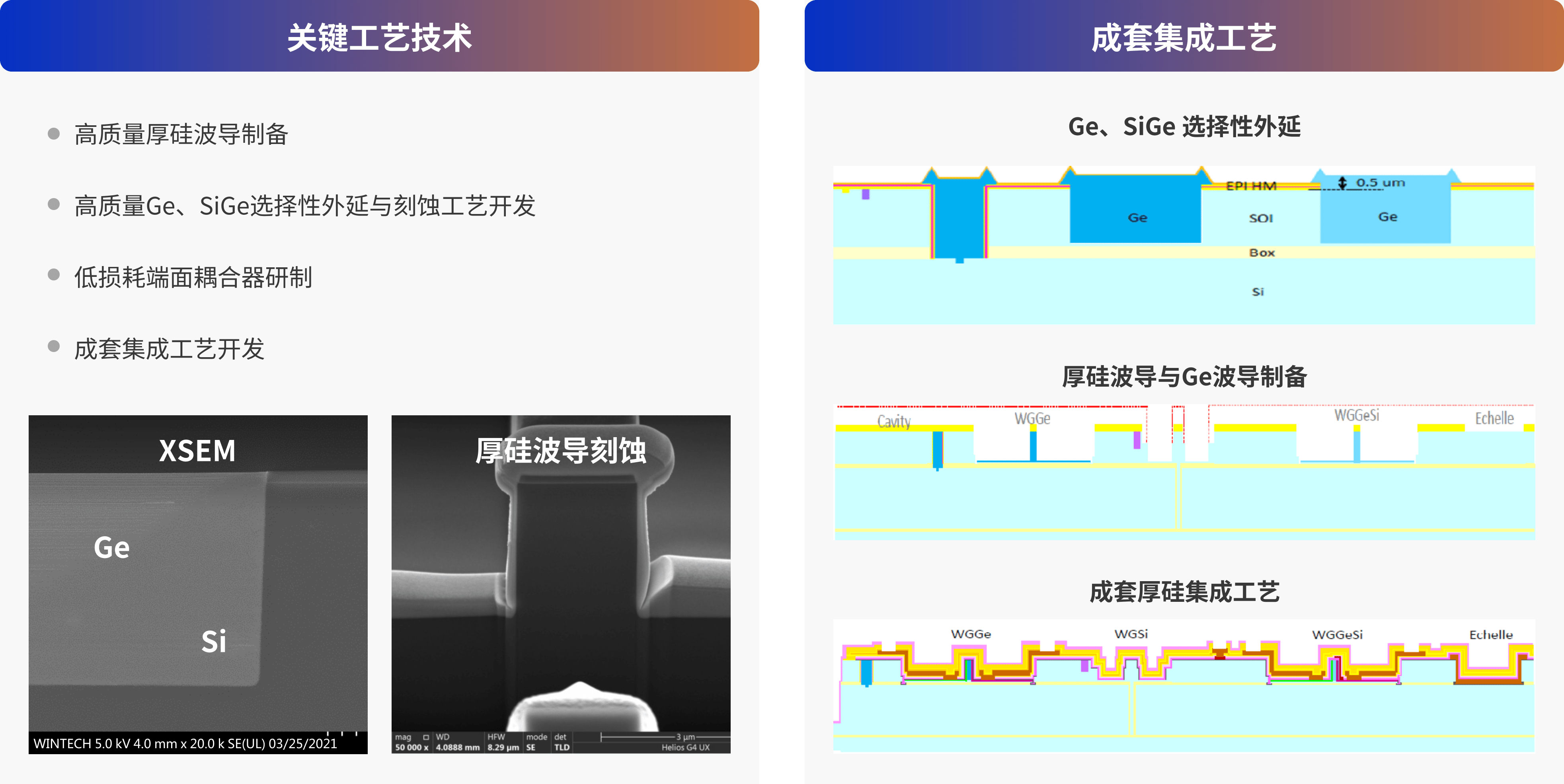 突破高质量厚硅波导制备、高质量Ge/SiGe选择性外延与刻蚀、低损耗端面耦合器研制等关键核心技术