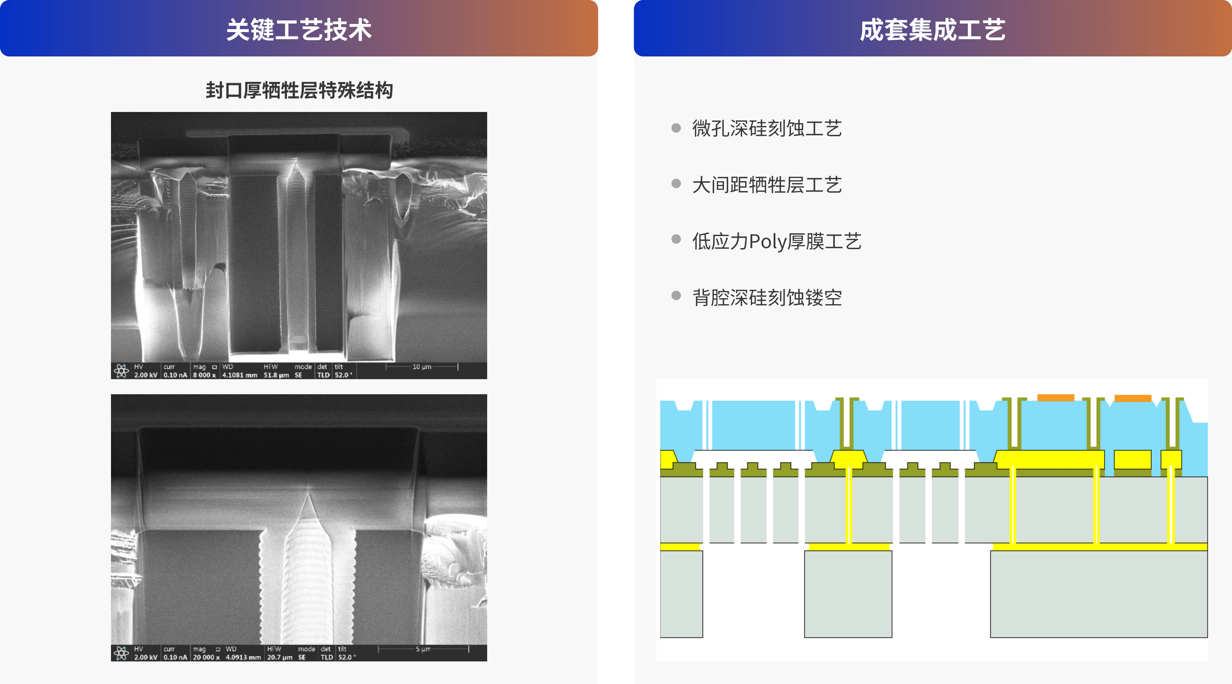 突破键合工艺、封口厚牺牲层工艺、振膜工艺、微孔深硅刻蚀等关键工艺技术