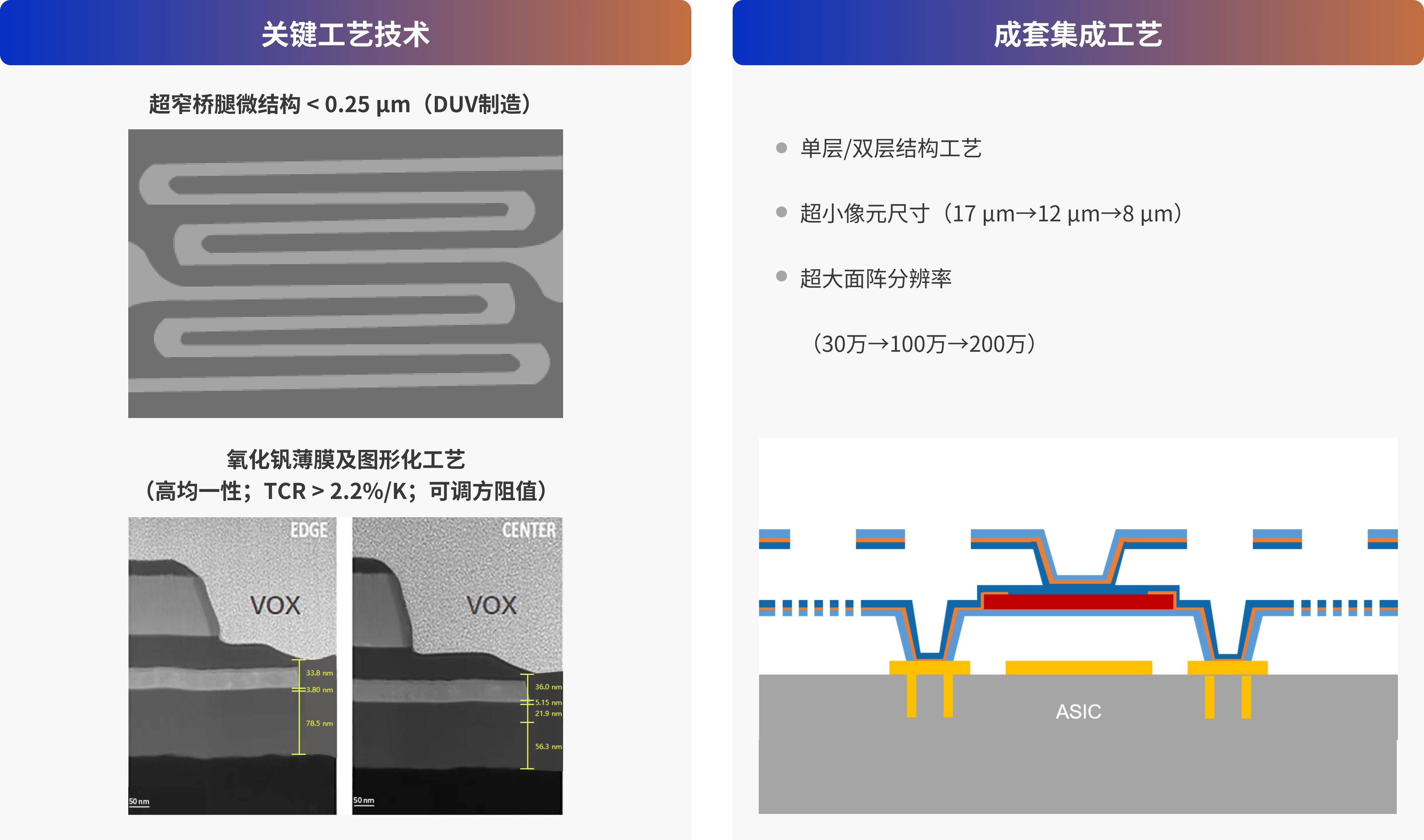 突破高均匀性氧化钒薄膜沉积、图形化,小线宽桥腿结构等关键工艺技术