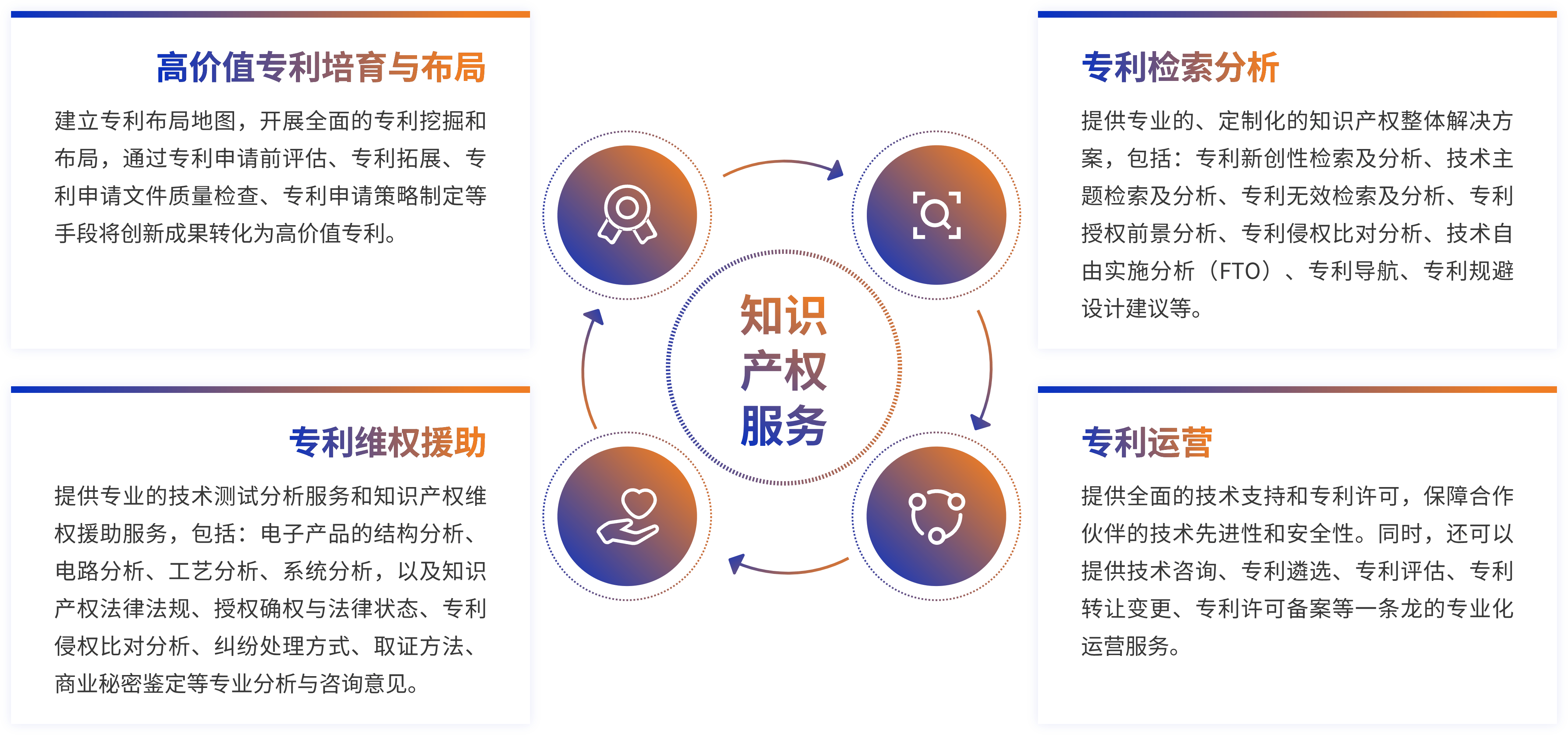 上海工研院将面向“超越摩尔”集成电路技术领域企业,依托扎实的技术背景、专业的测试分析能力、深刻的行业理解,结合专业的知识产权及法律知识,为合作伙伴提供高价值专利培育、知识产权检索、分析、咨询、运营、确权、维权、技术鉴定、纠纷处理及培训等一站式知识产权服务,保障客户的切身利益。